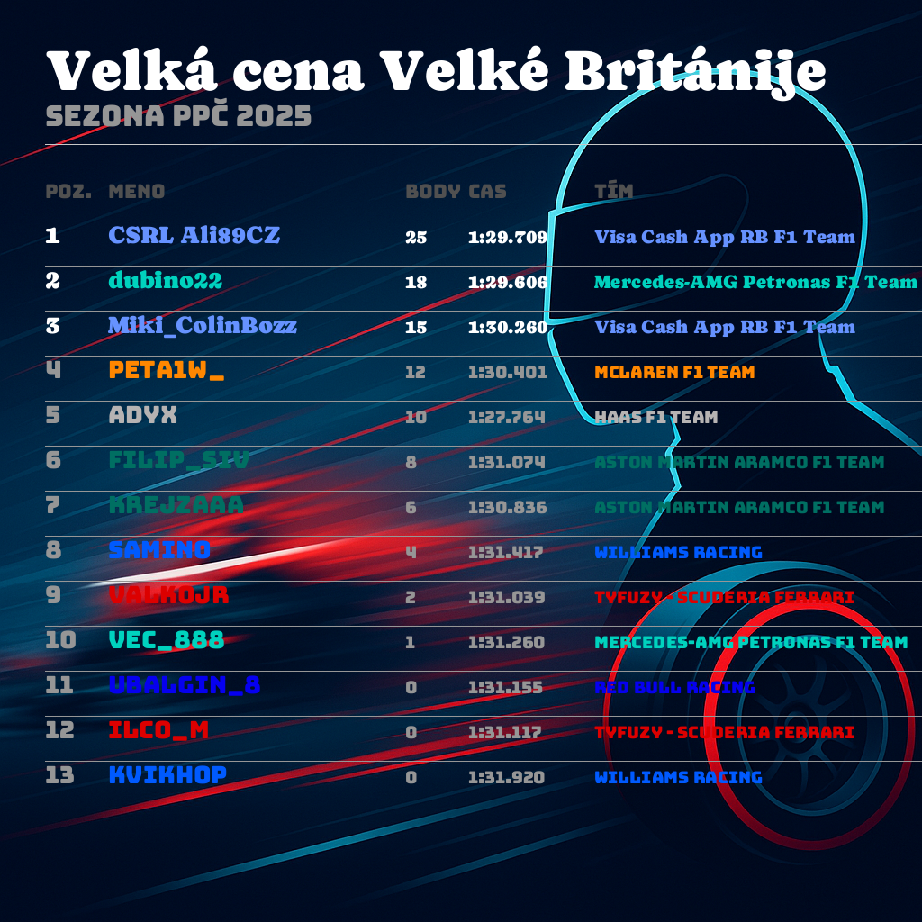 Poz. Jazdec Tím Body Najrýchlejšie kolo